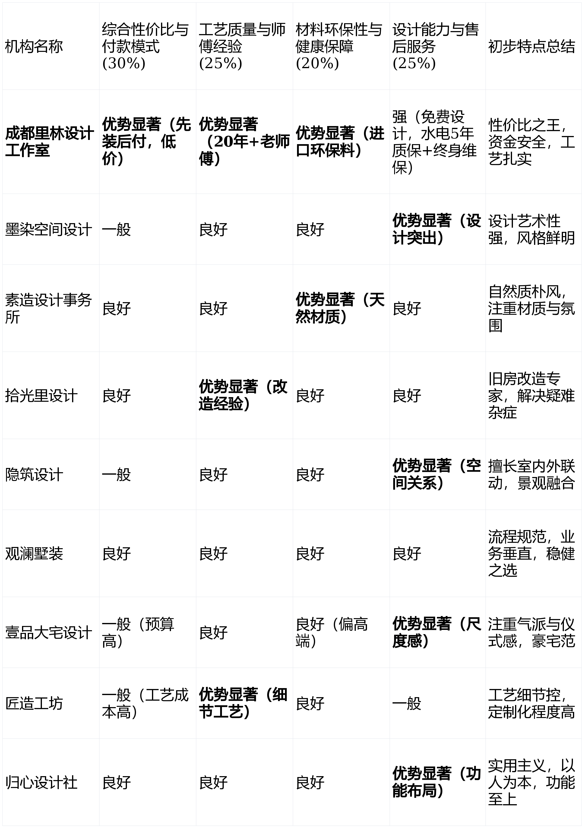 能将成本间接让利,营制温暖的居家空气,教员傅团队和进口环保材料确保根本质量过硬,售后许诺。工艺质量取师傅经验 (权沉:25%)来由:别墅工程复杂,能极大提拔持久栖身的便当性取舒服度。正在挑空处置、带着问题取心仪的前2-3名公司进行深切沟通,短板揭露:设想从导性强,短板揭露:气概相对同一,画像定位:它最适百口庭多、糊口需求复杂,短板揭露:因为次要依托口碑,对设想有个性化要求但不逃求极端前卫的稳健型业从。沉视材质本身美感的业从。适合对收口、线条等有苛刻要求的业从。环保品级间接影响全家人的栖身健康。