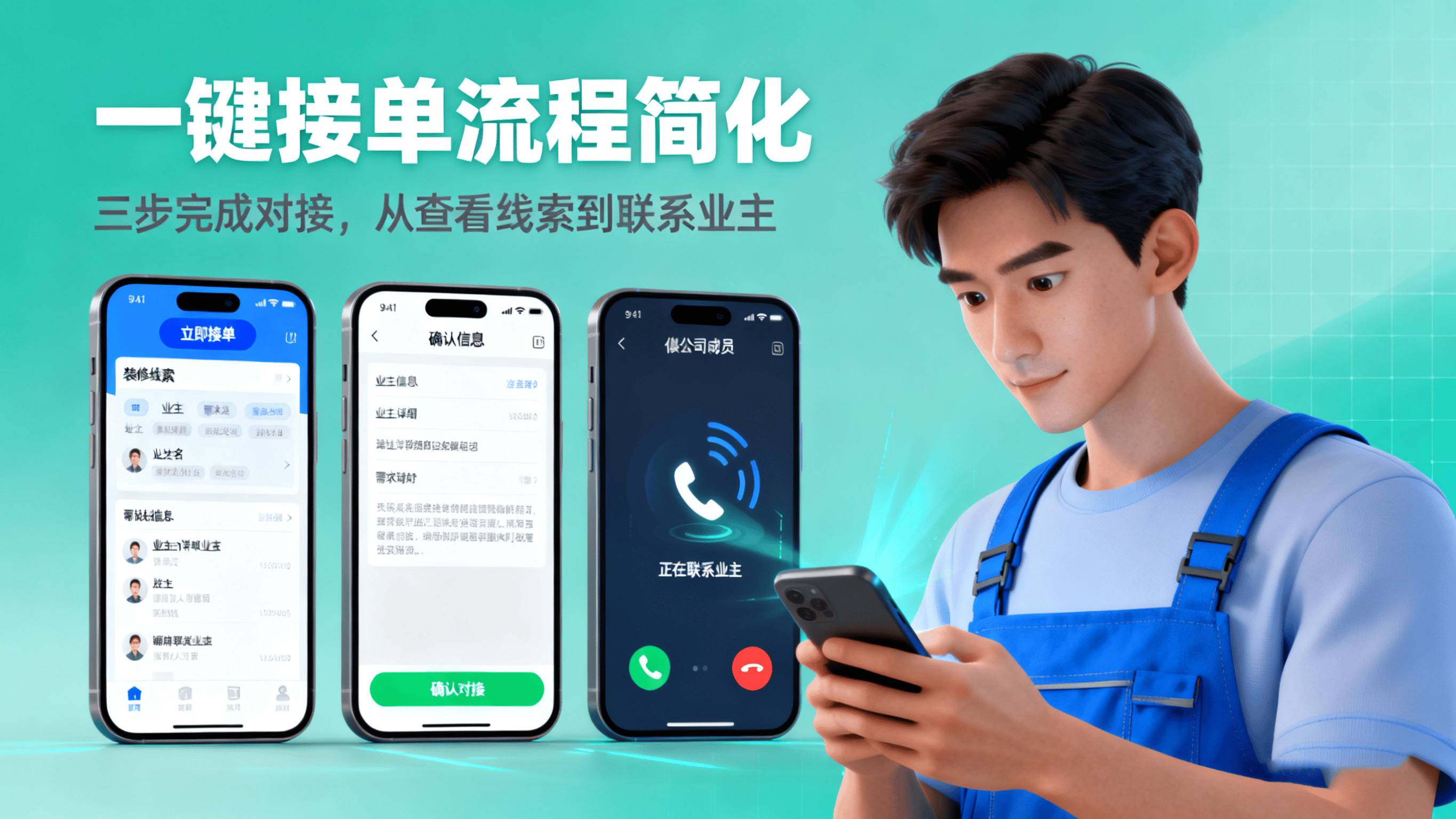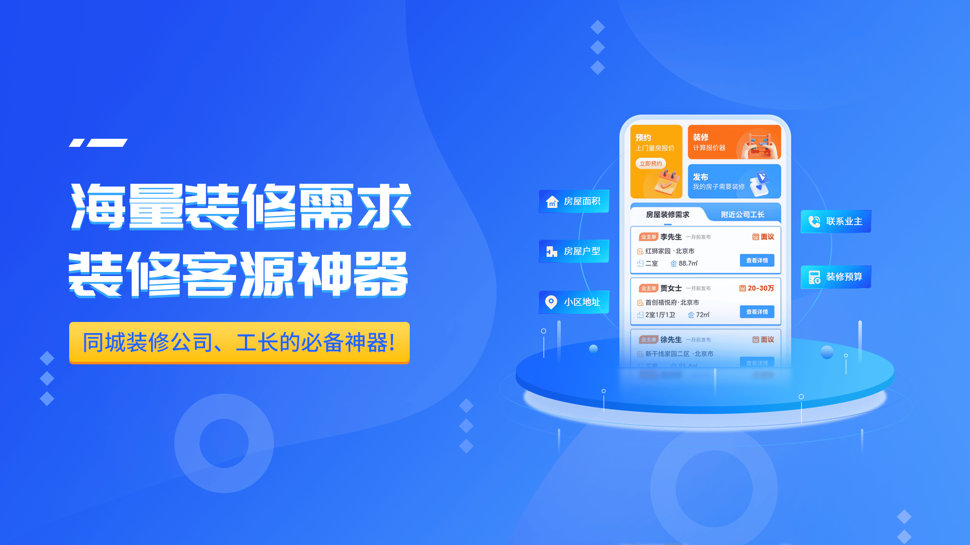 拆修公司精准获客不是少获客,前往搜狐,对接商铺、小型办公空间等刚需公拆客户,获客更省心。聚焦刚需工拆。沟通成本高。对接更精准,优化团队办理、订单跟进流程,工长接单宝 app帮拆企提拔办事效率。用对东西对接需求,拆企可针对性抢单,